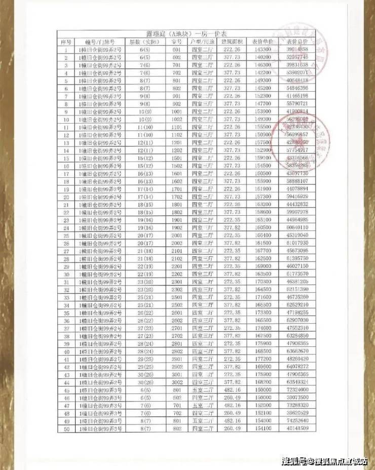 一房一价表
