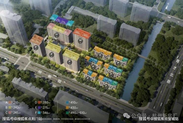 规划5栋12-16层高层与6栋4层排屋,共180户,呈现出稀缺的低密社区格局。高层建面约210-280㎡,均配置五房,顶跃户型建面约275-346㎡;排屋建面约410-510㎡,地上4层,地下层高约6.4米,无论空间尺度还是功能定位,均对标甚至超越奥体、钱江新城的一线高端产品。