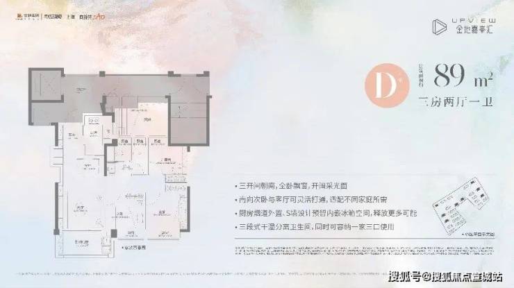 金地嘉峯汇售楼处电话400-902-3966✅✅✅建面约89㎡三房两厅一卫(D户型),不仅功能完备,而且很好地把控了总价,约350万起即可上车高配品质三房,堪比市场上110平左右的空间感!
