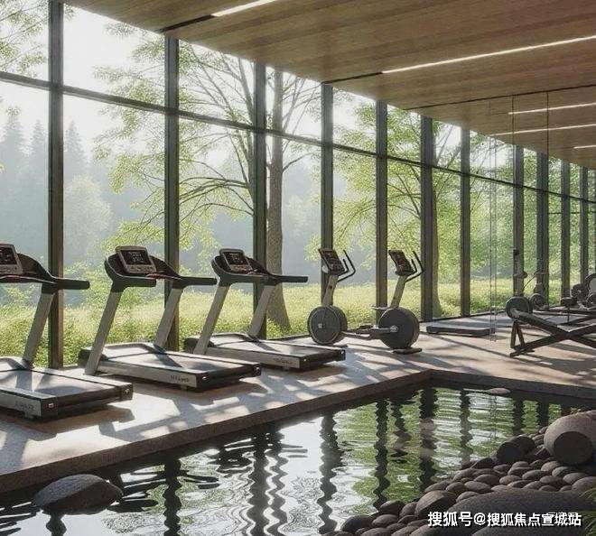 当你在泳池遨游时、健身房跑步时,外界的风光也被引入眼帘,带来一种被山川溪谷包裹的自然疗愈感。