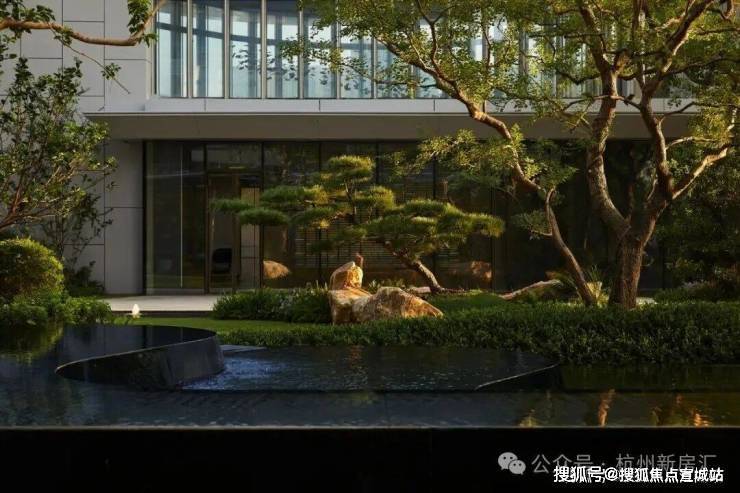 走入T-ONE潮博西区的园区,可以看到一条蜿蜒的水系串联着不同场景,贯穿整个楼盘。在这里,Pok是结合了杭州「钱塘江潮」的在地文化,用溪流与叠水打造出了一座很有度假感的花园。花园中,凡是有户外座椅的地方,就会有微风、树荫与水流的环绕。