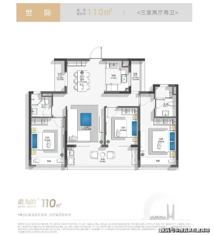 主力户型:约 110㎡三房两卫、约 135㎡四房两卫。