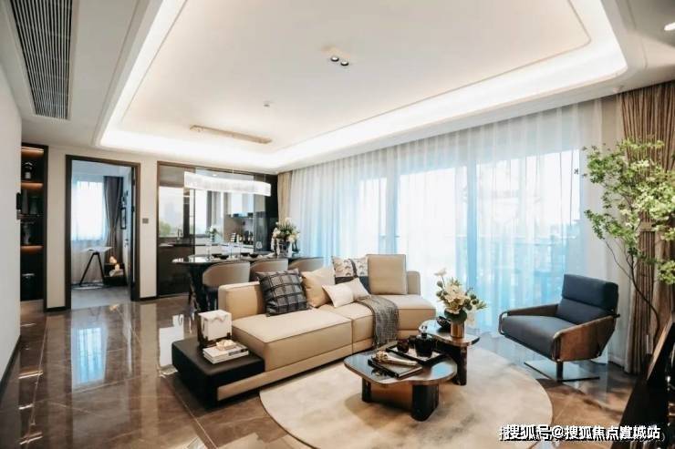►酒店度假场景:空间营造丰富多元,通过式入园大堂,递进式多层次中央景观,约4米层高全通透架空式入户大堂、公共社交场景及共享空间,旨在为业主创造高品质的居住体验。