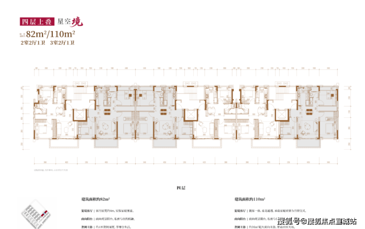 建面约82㎡2房2厅2卫/110㎡3房2厅2卫(四层上叠):