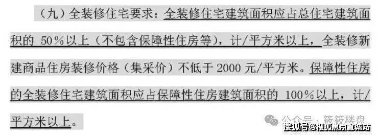 装修要求:地块要求50%以上商品房全装修,装修标准(集采价)不低于2000元/平。
