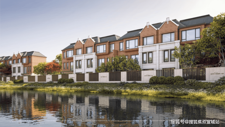西郊十年未见级臻席低密墅区,约1km双水岸环抱,约20米宽景观生态河道,约270°广角河景。