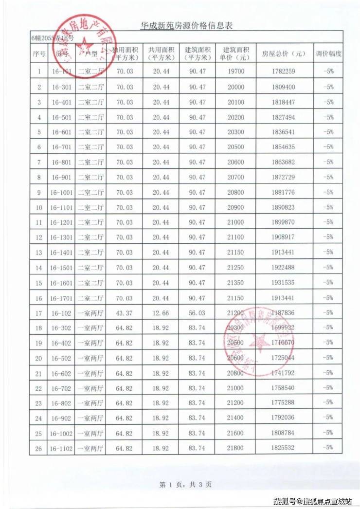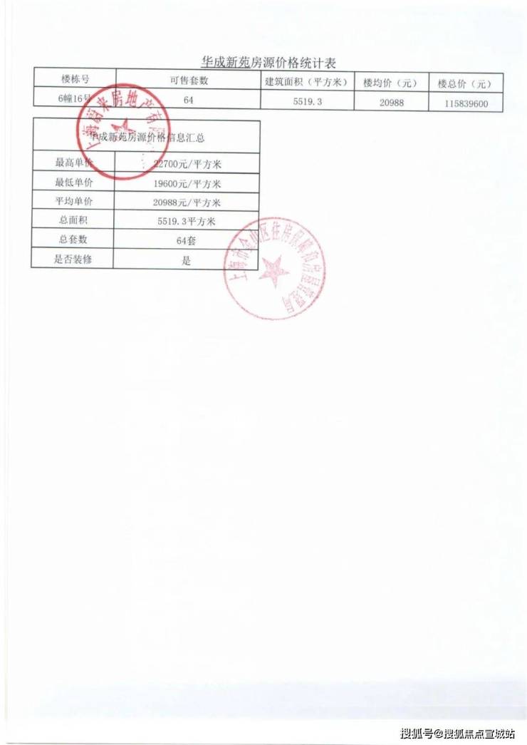 项目一房一价表