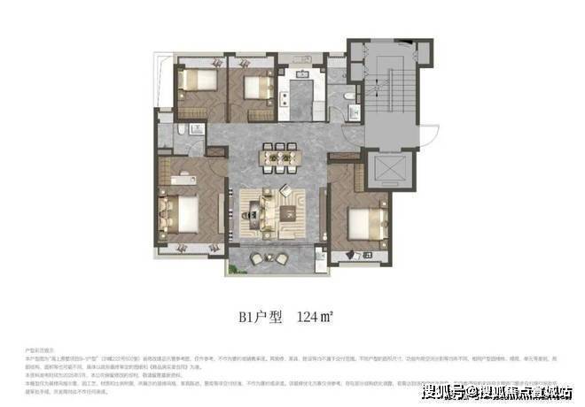 以建面约124㎡四室洋房为例,超大餐客巨厅、独立主卧套房、独立书房,户型布局媲美平层别墅。可分可合厅房、全卧飘窗巧思,延伸日常生活的想象。