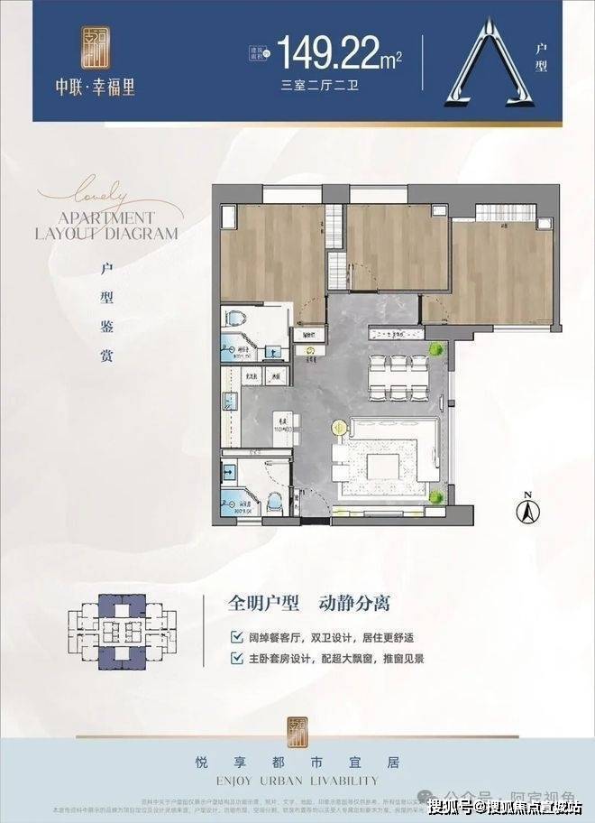 A户型149㎡——2房户型(三开间朝阳,主人套房设计)采光通风具佳
