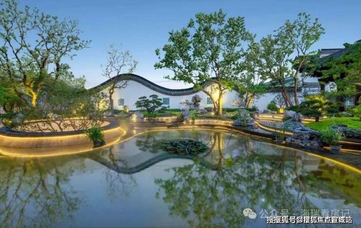 项目采用三段式入户:一进辋川入画(主入口空间),二进:闲庭碎影(戏台庭院),三进:临风听湖(自然庭院)。入户大门屋顶采用唐代“重檐歇山顶”形式配上台基上的唐代建筑标志阑干,入院后有一副唐风画作,其次以亭台楼榭、理水叠山的中国园林意境,重现盛唐大明宫百花争艳,小桥流水,落叶如金的景观。社区景观层层递进,让住户置身其中,体验唐风山水。