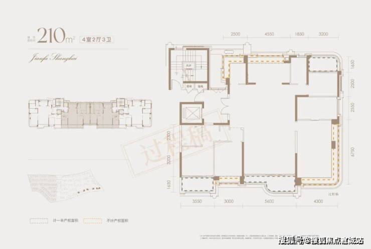 经过专业建筑师测算,该户型的客厅南向开间达到3.9米,入户门到公卫的距离足足5.35米。
