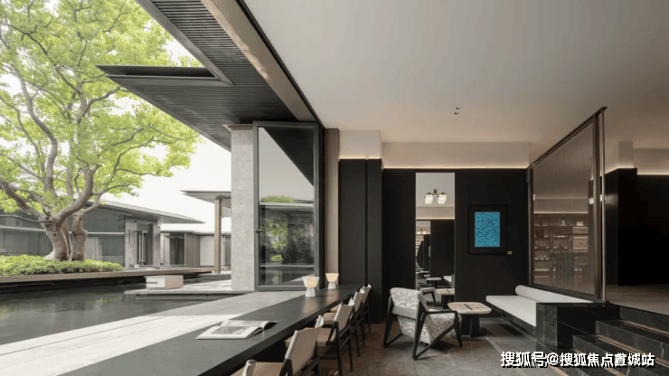 二重中心水景融合苏式园林独有的叠山理水艺术,运用流动且空灵的设计手法,打造出一个充满意境的景观空间。在这里,“一峰耸立如太华千寻,一勺波光似江湖万里”,生动展现了山水之间的诗意境界。秉承“曲则全”的哲理,结合东方美学的现代摄影视角,呈现一场视觉与心灵的盛宴。