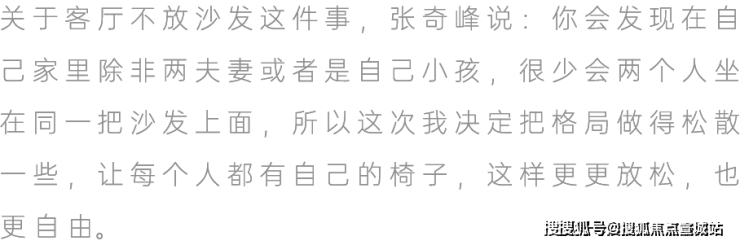 张奇峰说:空间的布局和我们当下的生活状态是直接关联的,我们以前住的地方有4个房间,但是其中两个基本没用过,所以这次干脆把多余的房间都去掉了.