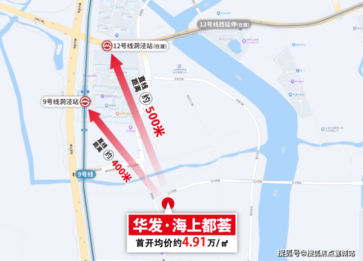 项目直线距离9号线洞泾站约400米,直线距离12号线洞泾站(西延伸线在建中)约500米。