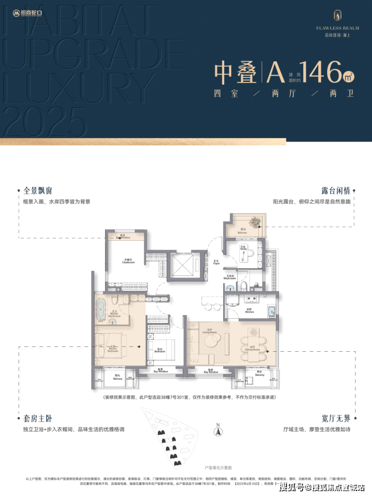 再加上南向大面宽短进深、全卧飘窗、L型转角阳台设计,尺度感都超棒,采光和视野更是一流。