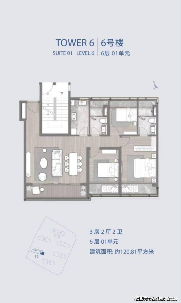 同样位于8#、6#、5#、3#等楼栋,2梯4户,层高3.00米,总楼层23-26F,价格270.0-301.0万。其中120.81㎡户型为3室2厅2卫,南向设计,空间开阔,居住舒适度较高。
