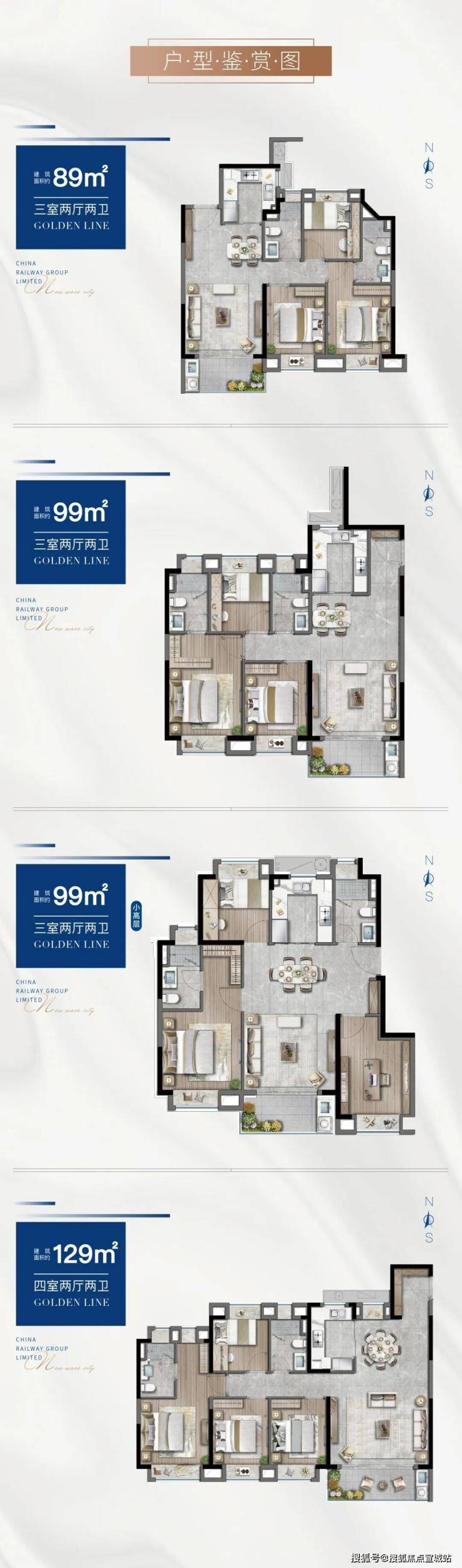 建面约89—129㎡奢雅科技住宅,全生命周期户型,空间布局合理,功能与尺度兼顾,满足不同客群、不同生活阶段的居住需求,赋予生活更多生命力。