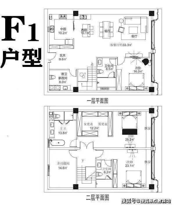 F户型:三套房、中西厨、奢阔主卧带大衣帽间