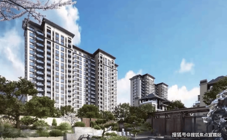 从产品形态上看,建邦国宸府打造的是金山新城极为稀缺的墅居产品,由高层+叠墅组成,建筑风格为现代中式滨海风格。其透露出的中式意境和构图美学我们可以从景观绿化一窥端倪: