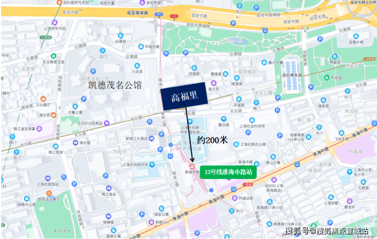 高福里项目地块,其地理位置优越,东接延中公园,一路之隔就是魔都传统豪宅【凯德茂名公馆】,南邻长乐路,西毗瑞金一路,北靠巨鹿路。此地块曾属于著名的“老卢湾”板块,是上海知名的豪宅地段之一,拥有丰富的历史与文化底蕴。