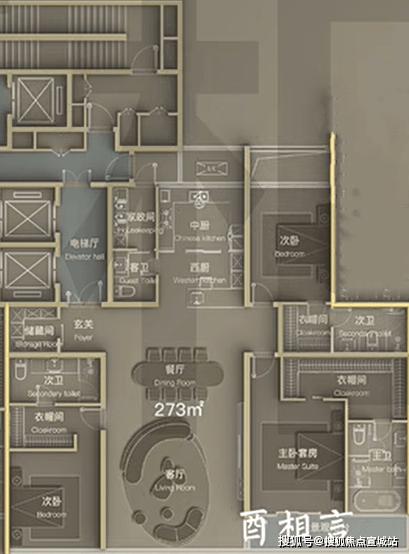 建面约273㎡三室两厅四卫