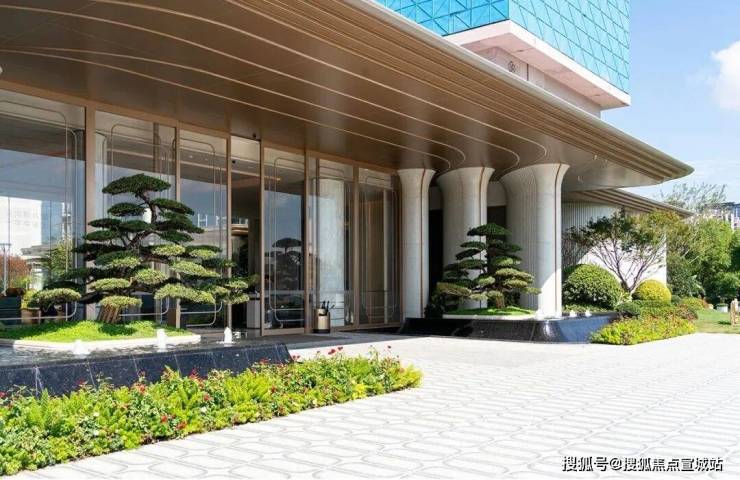 大面积玻璃幕墙搭配香槟色金属线条,辅以造型格栅与石材基座,将现代感与高级感融为一体,质感媲美高端豪宅,视觉上简洁大气又不失精致格调,一眼便能俘获人心。
