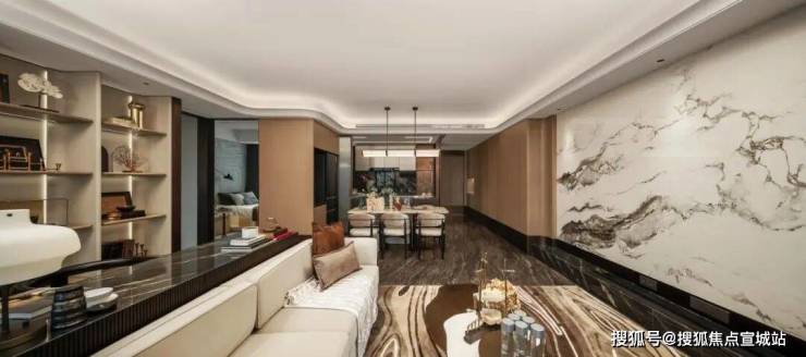 ✦电视墙与玄关通体雪山蓝岩板,南向次卧隐藏门设计