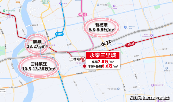 事实上,三林滨江在空间上与前滩更为贴近,但永泰三里城在时间距离上更占优势.