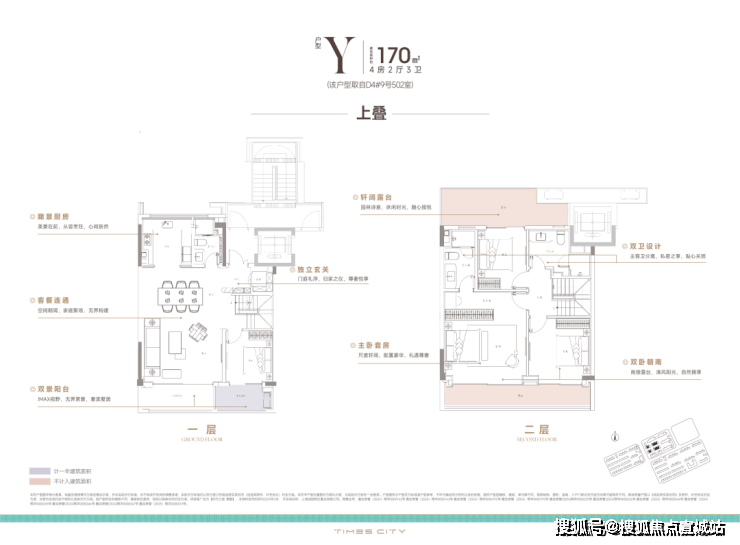 170m²上叠,南向双阳台+南北双露台: