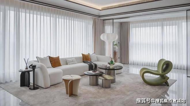 在示范区,挑选了琚宾设计的WAVE1960样板房,来感受一下大师以ART DECO的对称、几何美学,构建起的摩登艺术空间。