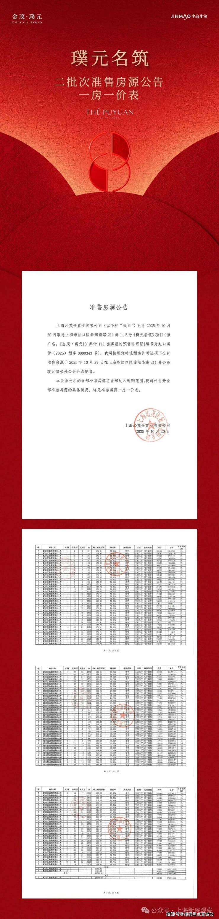 最新消息!上海2025年首个地王“瑞虹地王”金茂+庆隆瑞虹项目正式定名「金茂·璞元」首开售罄!三期建面约200㎡4房;均价16.81万/m²,总价2800-3670万!一梯一户,得房率82-85%,高隐私、空间感强;售楼处线上火热预约中!