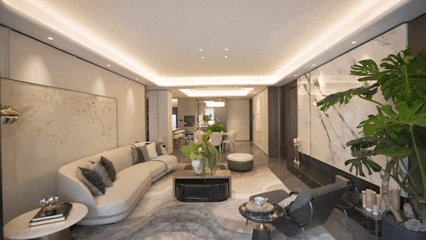 同时大面积玻璃窗与转角270°玻璃窗的运用,极大增强了室内的居住与采光体验。