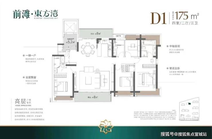 如果有进阶改善置业需求的客户,可以选择建面约140/175㎡4房2厅3卫!