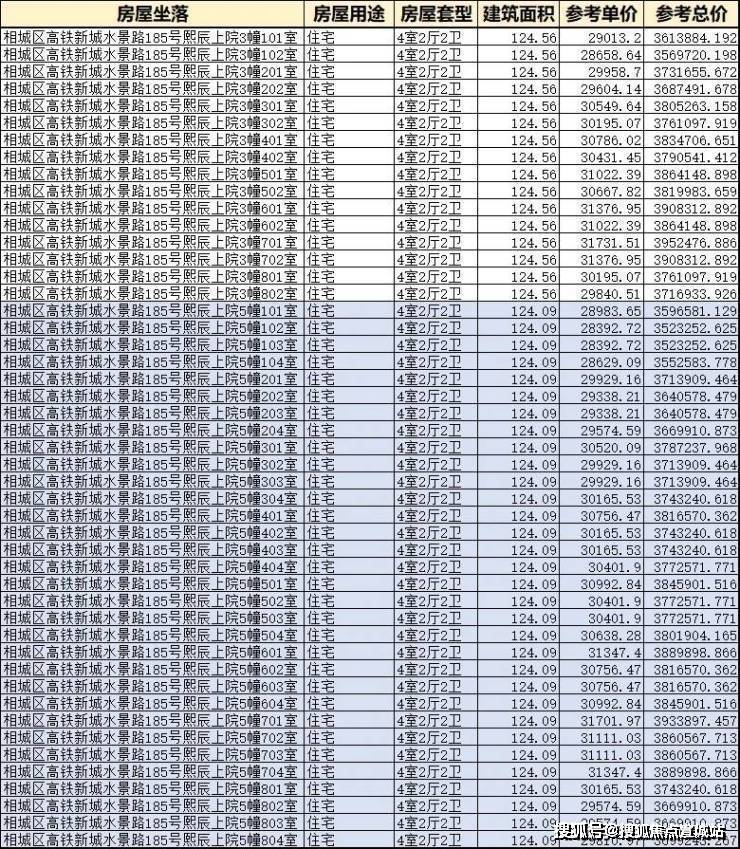 熙辰上院一房一价表