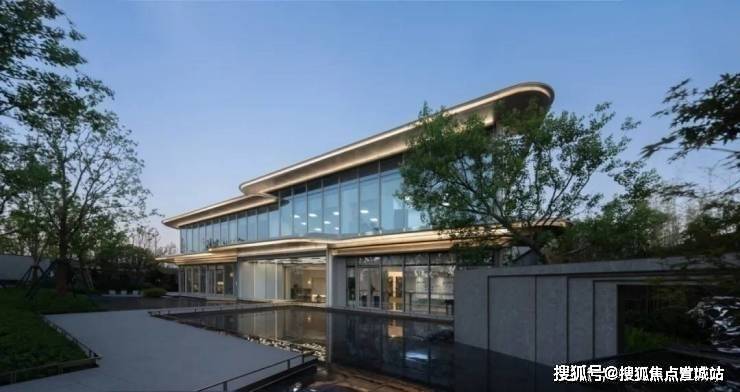 极简线条、大面积玻璃、东方传统飘檐元素打造类剧院式公建化立面