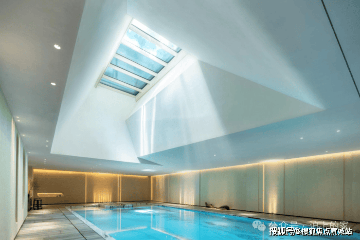 第三重,言上会己,专属于业主的惬意空间。仿罗马浴场的泳池,让业主在这里自由放松和运动。整个空间,引自然光入室,天窗之上有水波,池面上是水影,在地下三层营造出一个山林间氛围,自然自在。