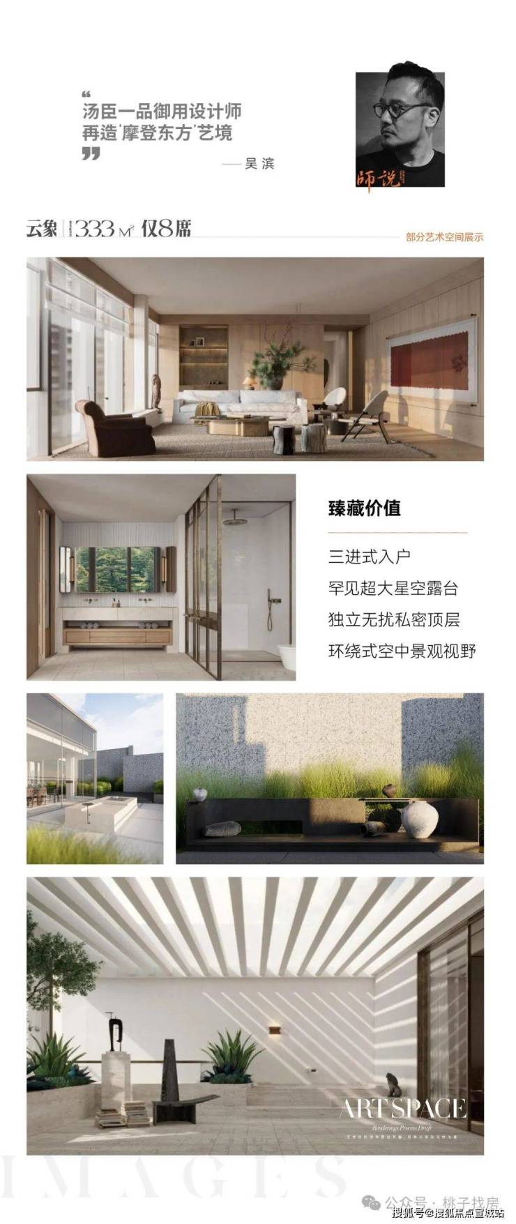 300方孤品艺术大平层,典藏67席,四种产品四种装修