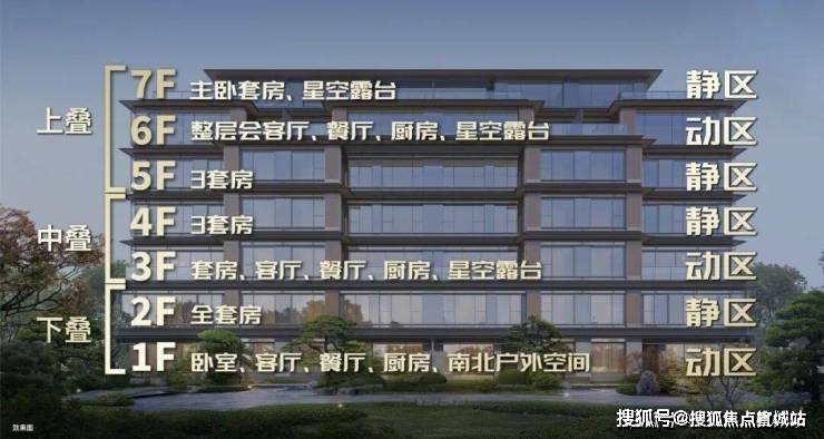 颠覆型户型,高净值圈层共识。建面约180-300㎡的叠加产品,更是以“垂直四合院”理念引发市场惊叹。