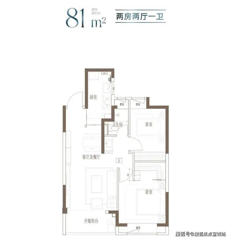 户型特点:小面积,低总价;2房朝南大面宽,舒适生活感受;卧室飘窗设计,释放更多公共空间。
