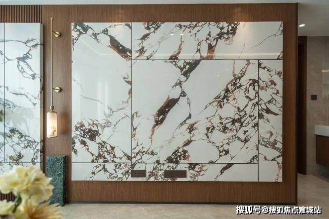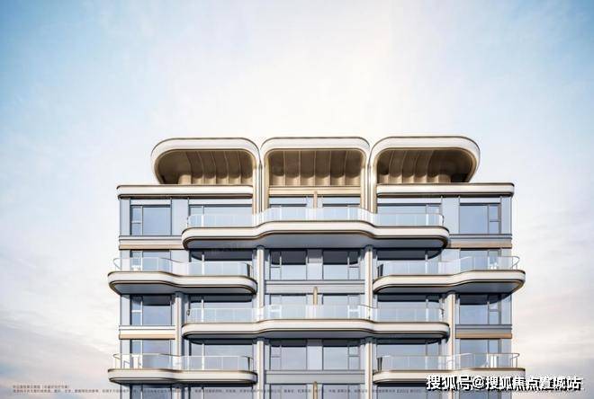 住宅基座浅香槟金铝板搭配白色石材;立面为香槟金色铝板、灰色铝板及浅香槟金铝板。