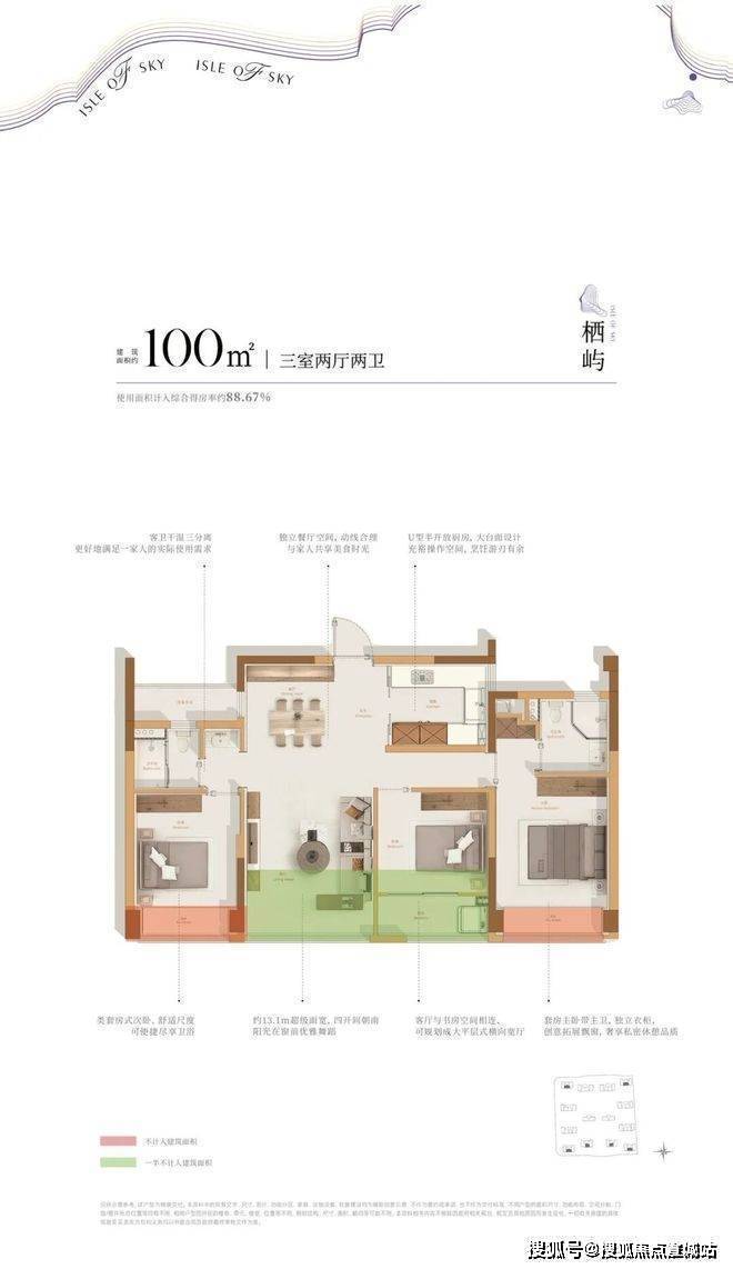 建面约100方户型: