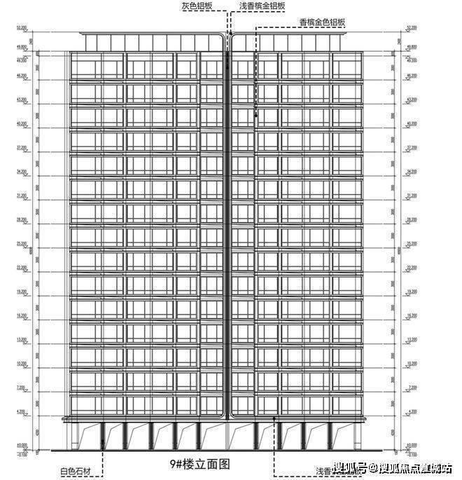 以9幢住宅(16F)为例,住宅架空层层高4.2米,住宅标准层层高3米。