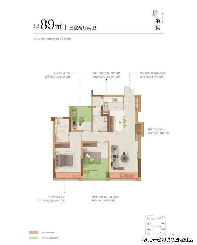 建面约89-132方,最高得房率100%