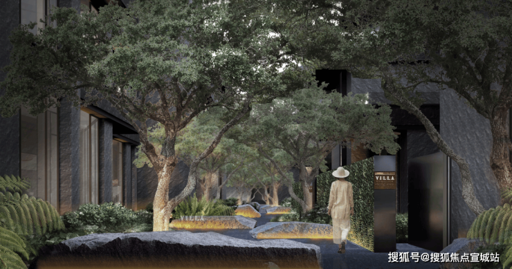 同源全球隐奢居住理念,“以安静取代喧哗、以自然取代浮华”,将避世居所、隐奢度假、艺术精神追求融合,营造拙朴沉稳、自然艺术的生活景致。三段式归家礼迎,格调森林院落景观,规制林荫雕塑花园、自然艺术花园、中心花园庭院,自然与空间交融,细绘移步风景、自然之美,赋予如云隐匿的悠然居所。