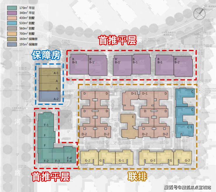 项目规划由5幢4层平层公寓、5幢3层联排别墅及1幢保障房组成。平层公寓面积段为134-350㎡、合计有45套;联排面积段为430㎡、530㎡、560㎡、700㎡,合计有23套。目前平层已售罄,剩余联排待售!