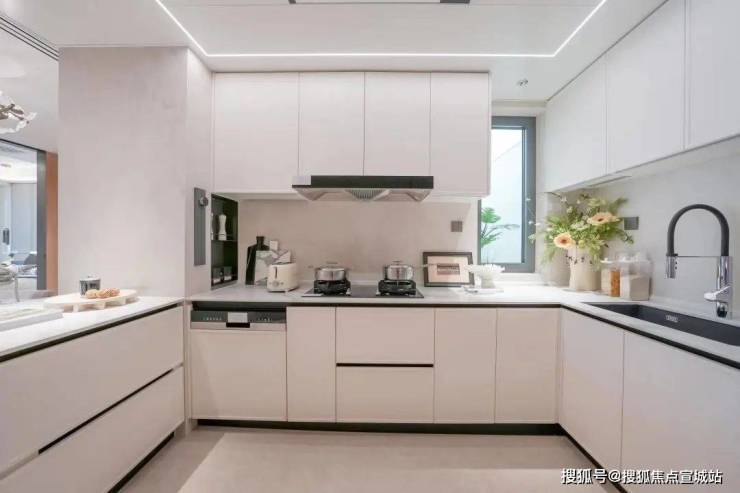 建面约112㎡的小户型,配置博世或同等档次品牌系列三件套(抽烟机、燃气灶和洗碗机);建面约134㎡的大户型则更进一步,将配置博世或同等档次品牌系列四件套。