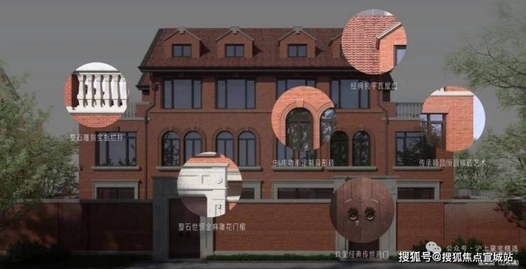 建筑基层石材选用近拟传统皇家建筑所用金山石的世贸金麻,经手工凿毛、酸洗做旧处理,搭配铜质落水管、水纹压花玻璃,每一处细节都在诉说海派大宅的优雅与贵重。