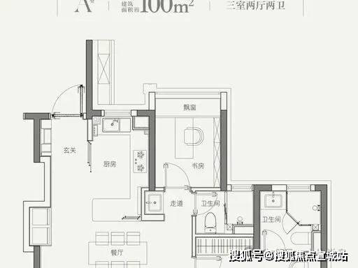 :严苛甄选国际一线品牌,大金中央空调、霍尼韦尔新风、威能地暖三大件齐全;厨房搭载博世厨电;卫生间采用TOTO 智能马桶、汉斯格雅恒温花洒;全屋智能家居系统加持,匠心打造城央精奢居住范本。(配图:建面约 100㎡高层户型图 + 样板间实景图)