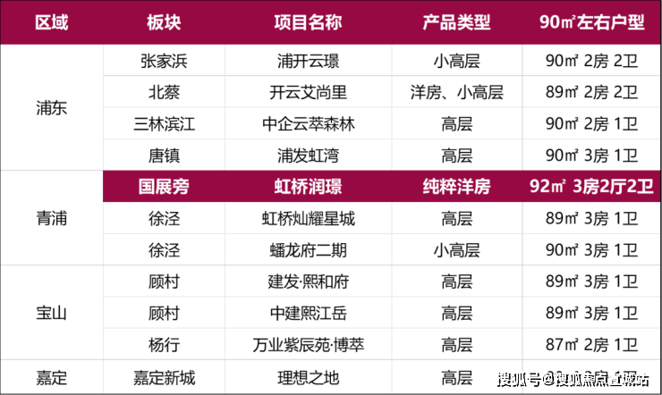 再看其他3个区的9个项目,虽然也做到了3房,但卫生间却都只有1个,这样看下来90㎡左右的户型3房1卫是共识,而且还都是高层或小高层。
