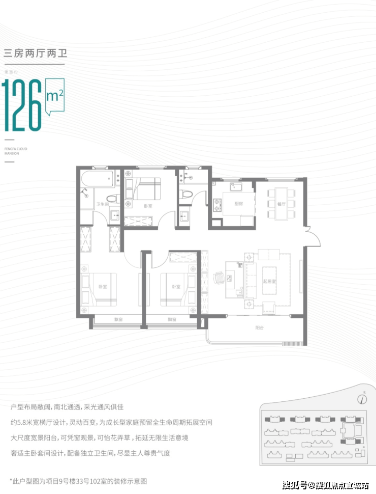 建面约126㎡3+1房2厅2卫▼